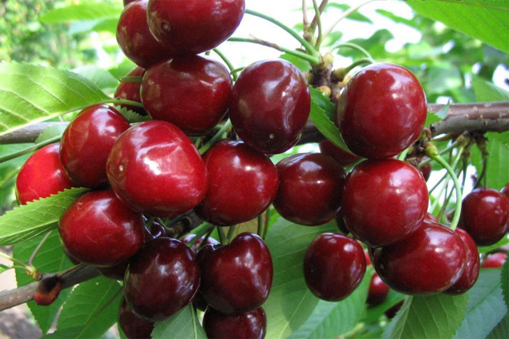 Плоды крупные, массой 6-8 г, широкосердцевидные, с притупленной верхушкой, темно-красные, почти черно-красные, сок интенсивно темно-красный.